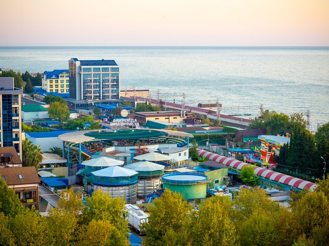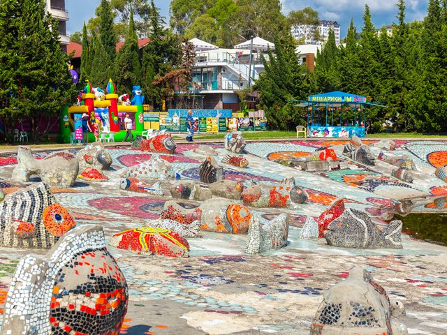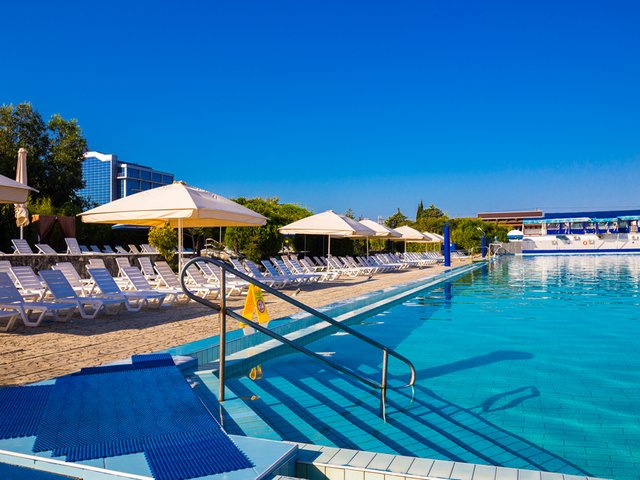 Высотка санатория, построенная на возвышенности – великолепное место обзора изумительных морских и горных пейзажей, а также окрестных парков и городских, курортных достопримечательностей, владений отеля, раскинувшихся на площади в 50 га. Санаторий радует своих гостей прекрасными бассейнами на собственной территории: его открытый бассейн с морской водой, площадью в 2900 кв м. В нём есть специальное детское отделение.