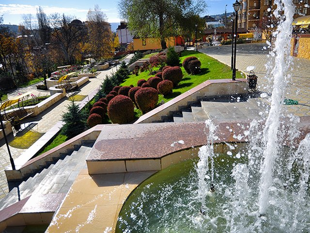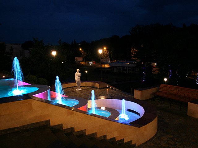 Санаторий «Солнечный» расположен в административном центре гостеприимного города-курорта Кисловодска. Его территория обустроена множеством уникальных фонтанов и каскадных лестниц, напоминающих великолепие Петергофа. Она утопает в зелени, обустроена уютными скамейками, беседками, музыкальными фонтанами.