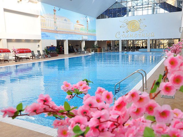 ПРЕИМУЩЕСТВА Санаторий «Солнечный» в Кисловодске соответствует международному классу "3 звезды", оснащен новейшим медицинским оборудованием, предлагает гостям комфортабельные номера различных категорий и отличный сервис. Особенность: возможно размещение на любое количество дней, размещение без лечения. Основные преимущества: большой выбор лечебно-диагностических и оздоровительных программ и уникальный спортивно-развлекательный комплекс (бассейн, зимний пляж, тренажерный зал, русская баня и финская сауна, бильярдный клуб,ночной клуб).