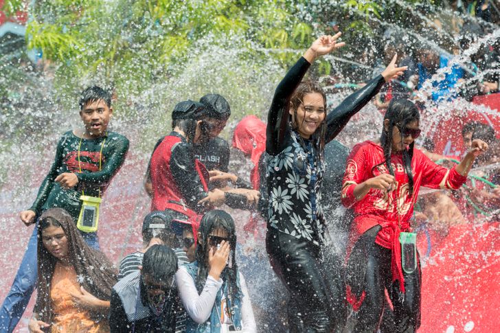 Тайский Новый год Сонгкран знаменует смену года по древнеиндийскому астрологическому календарю и наступление сезона дождей. Тайцы угощают буддийских монахов праздничными кушаньями. Статуи Будды омывают водой с лепестками роз и жасмина. В эти дни сложно остаться сухим - люди из водяных пистолетов, из тазиков и шлангов обливают прохожих и проезжающих водой. Мажут белой глиной и тальком. Это символизирует очищение, обновление и избавление от негатива, накопленного за год. Бирманцы тоже отмечают Новый год в апреле - в даты, которые установит правительство